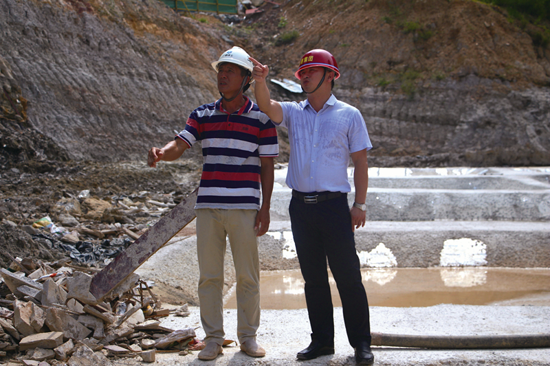 何小勇(右一)對現場(chǎng)施工進(jìn)行指導
