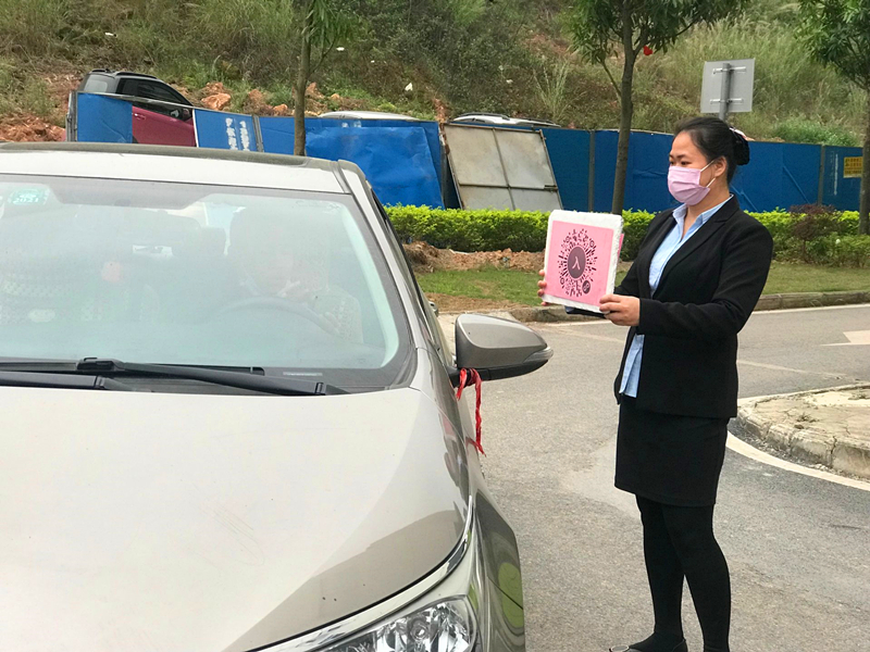 萬(wàn)方公司創(chuàng )意物業(yè)服務(wù)中心副主任黃春芳為進(jìn)出園區車(chē)輛做掃碼登記